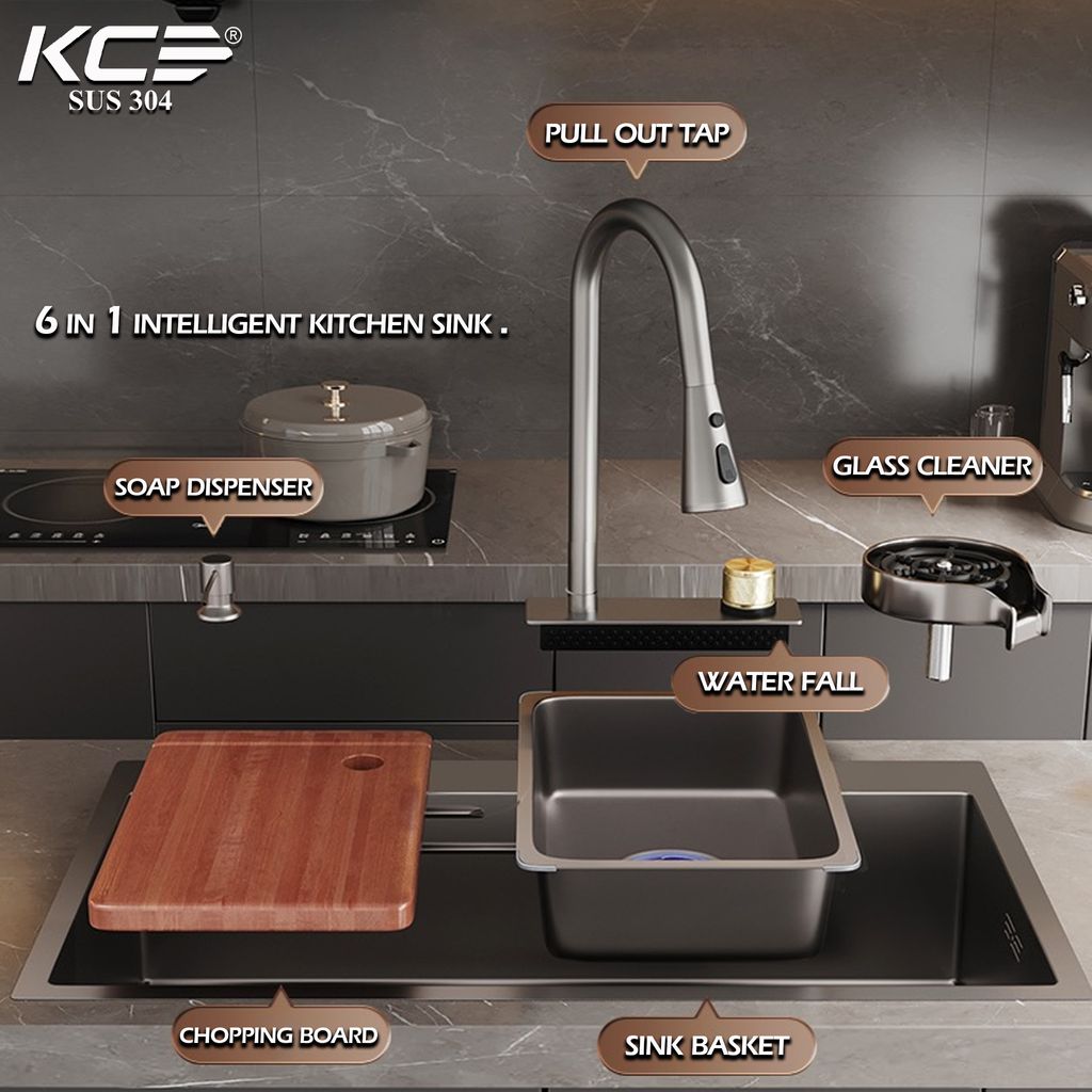 𝗙𝗘𝗔𝗧𝗨𝗥𝗘𝗦: • Ultrasonic - Advance cleaning technology • X Flume Design - Optimize water drainage • Brushed Satin Finish - Elegant finish to create an enduring luster resistance • Stainless Steel 304 Premium Grade 18/8 - SUS 304 offer exceptional resistance to rusty • R10 Radius Angle - Gentle rounded corners easier to clean and provide more inner space • Up To 220MM Deep Bowl - Provide more space for stacking dishes or large pots & pans • Anti Condensation - Effectively eliminate condensation or moisture buildup & to increase durability • Sound Absorption - Equipped with rubber dampening pads to absorb & reduce noice & vibration when sink is in use