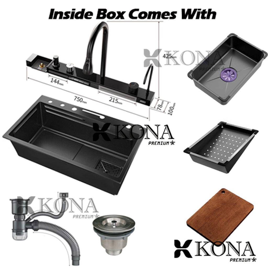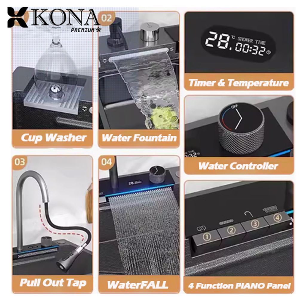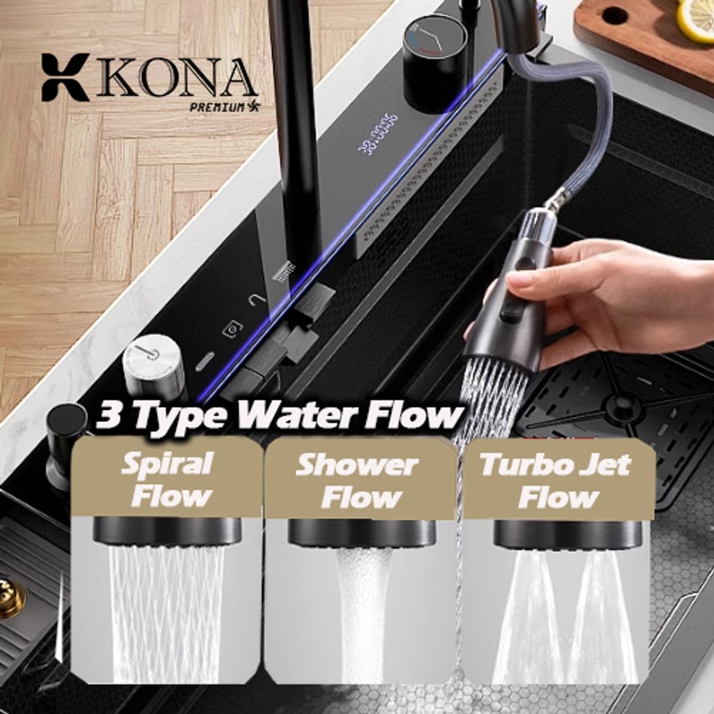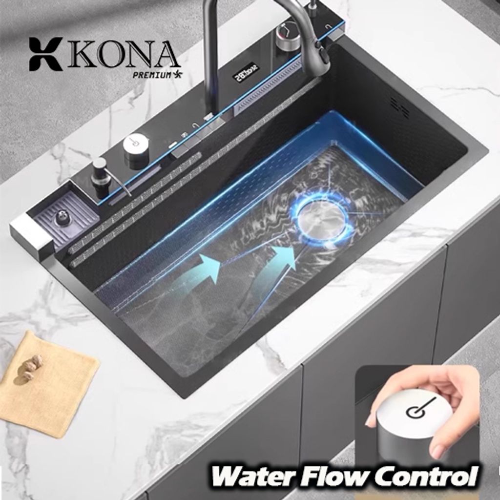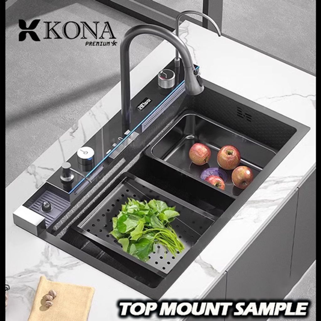 KONA 304 Stainless Steel Flying Rain Waterfall Nano Honeycomb Multi Function Workstation Kitchen Sink SINKI DAPUR 飞雨鲸鱼水槽