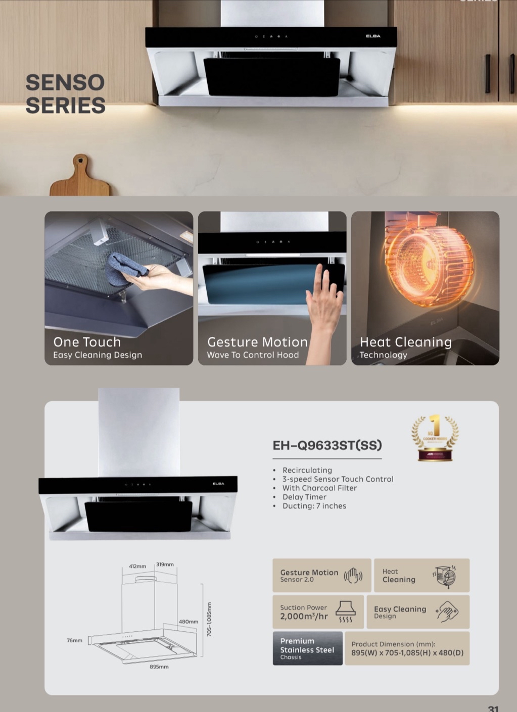 - Product Dimension : 895 (W) x 936-1316 (H) x 380 (D) mm