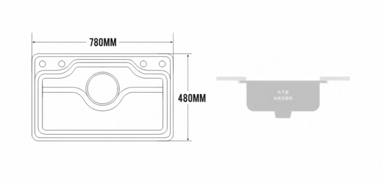 - Overall Bowl Size : 780 x 480 x 210mm+/-